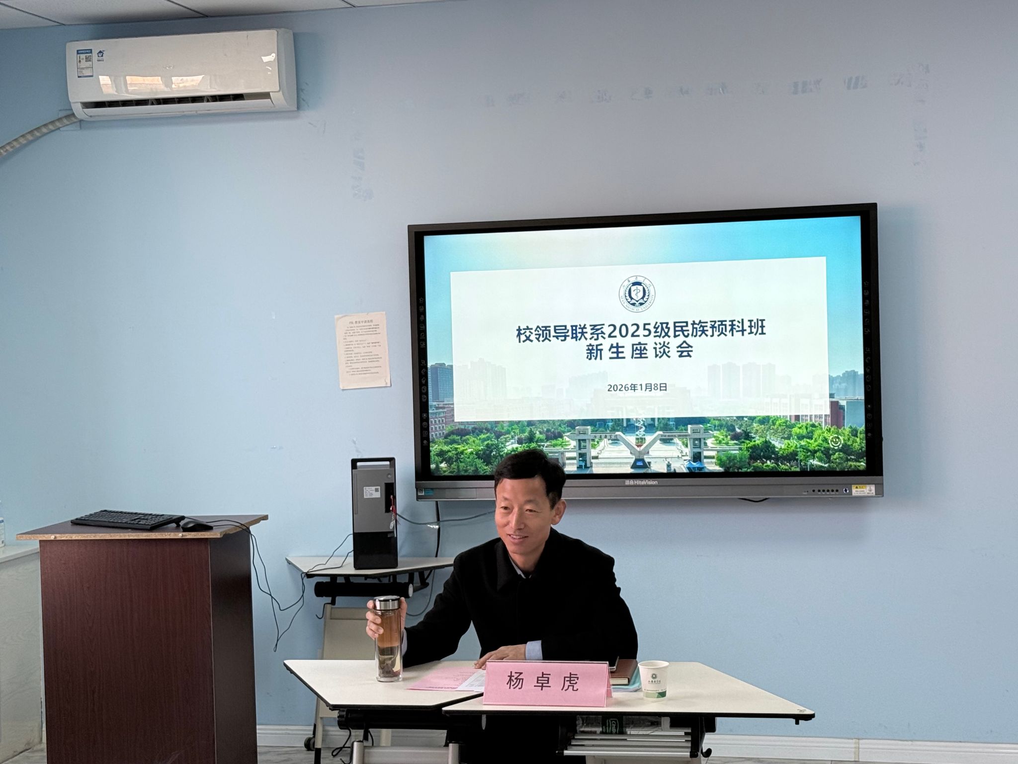 1月8日,校党委副书记杨卓虎在外国语学院与2025级民族预科班学生开展座谈交流。党委副书记杨卓虎与学生座谈杨卓虎以“故事+对话”的形式,围绕“感恩、奋斗、视野、责任”四个关键词与学生详细交流。他引用罗振宇跨年演讲中“小时工母亲陪考”故事,引导学生感恩父母、感恩伟大时代,鼓励同学们志存高远,将个人发展融入国家与边疆建设,并强调大学是拓展认知的关键阶段,勉励学生珍惜时光、明确目标、勇于突破。交流环节,同学...