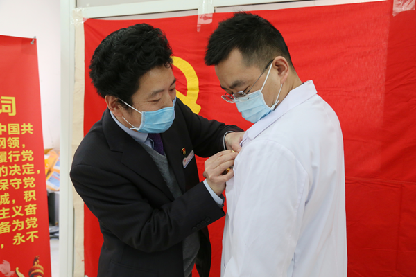 “我志愿加入中国共产党,拥护党的纲领,遵守党的章程……”面对鲜艳的党旗,白利刚同志高举右拳,庄严宣誓。2月25日下午,一场特殊的入党宣誓仪式正在我校附属宝鸡医院举行。 我校附属宝鸡医院白利刚同志入党宣誓现场 之所以特殊,是因为入党人是我校附属宝鸡医院内科党支部入党积极分子、隔离病区医疗队员白利刚,而入党地址,则是在新冠肺炎疫情防控的第一线——我校附属宝鸡医院隔离病区生活区域。 2月8日,根据疫情防控救...