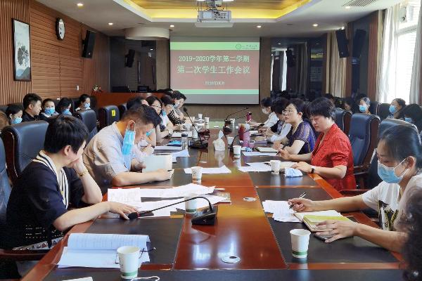 5月26日上午,学工部(处)在行政楼第二会议室组织召开本学期第二次学生工作会议。校党委副书记熊冬梅出席会议并讲话。各学院党总支书记(副书记)、学生科长、学工部全体人员参加了会议。会议由学工部部长、学生处处长靳红樱主持。 学生工作会议现场 会上,各学院就返校复学和未返校学生情况进行了简要汇报。学生处副处长昝倩就毕业生离校和第四届民族文化节工作进行了安排和部署。同时,学生处还就学生学风建设、疫情防控期...