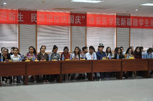 (学工部)9月30日下午,一场别开生面的国庆庆祝活动在我校图书馆五楼会议室举行,学校党委副书记熊冬梅、陕西省委高教工委学工部副部长库来西‧依不拉音、新疆内派服务管理教师、学工部全体人员、各院(系)党总支书记、学生科长、辅导员以及来自新疆地区的维吾尔族、哈萨克族、柯尔克孜族、乌孜别克族、回族、蒙古族、汉族等100余名师生共聚一堂,其乐融融,热烈庆祝第67个国庆节。座谈会由学工部副部长、校团委书记王燕主持...