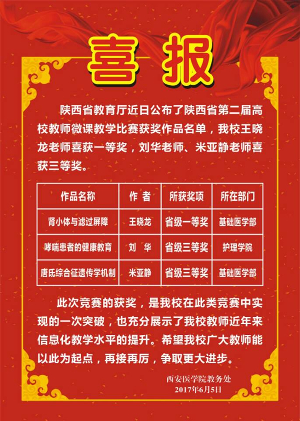 喜报——我校教师在陕西省第二届高校教师微课教学比赛中喜获一等奖