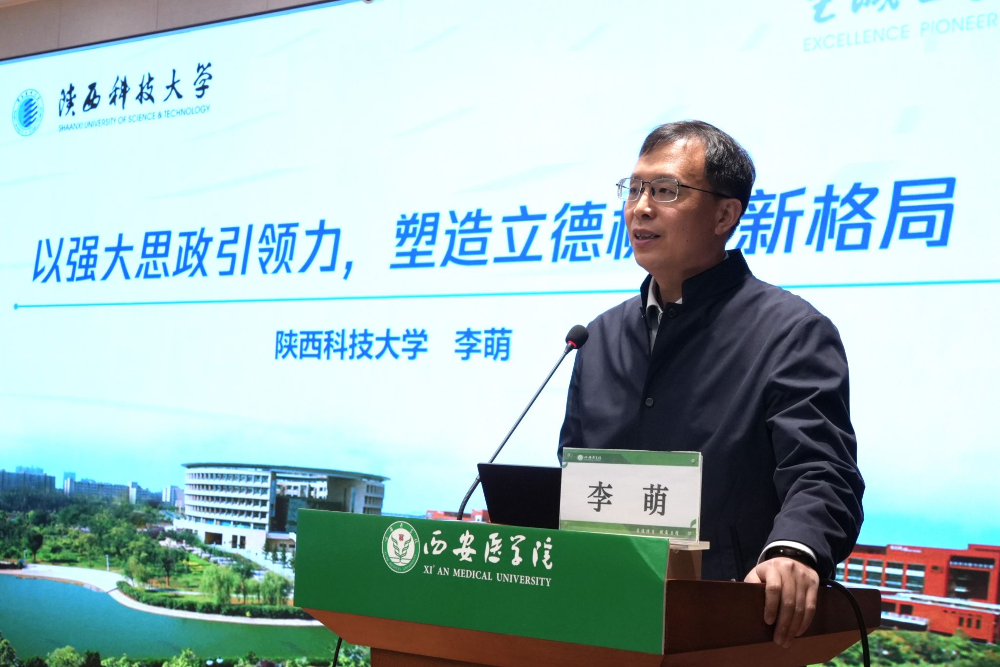 陕西科技大学党委委员、宣传部部长李萌以《以强大思政引领力塑造立德树人新格局》为题作了专题报告,报告以高校典型思政工作案例为切入点,从建立“三全育人”体制机制、完善思想政治工作体系、营造积极向上的舆论氛围等方面就做好大学生思想政治工作提供了宝贵经验。学生工作部(学生处)、武装部部长昝倩和马克思主义学院院长桑利娥分别围绕学生思想动态、增强思政课教学针对性进行交流发言。