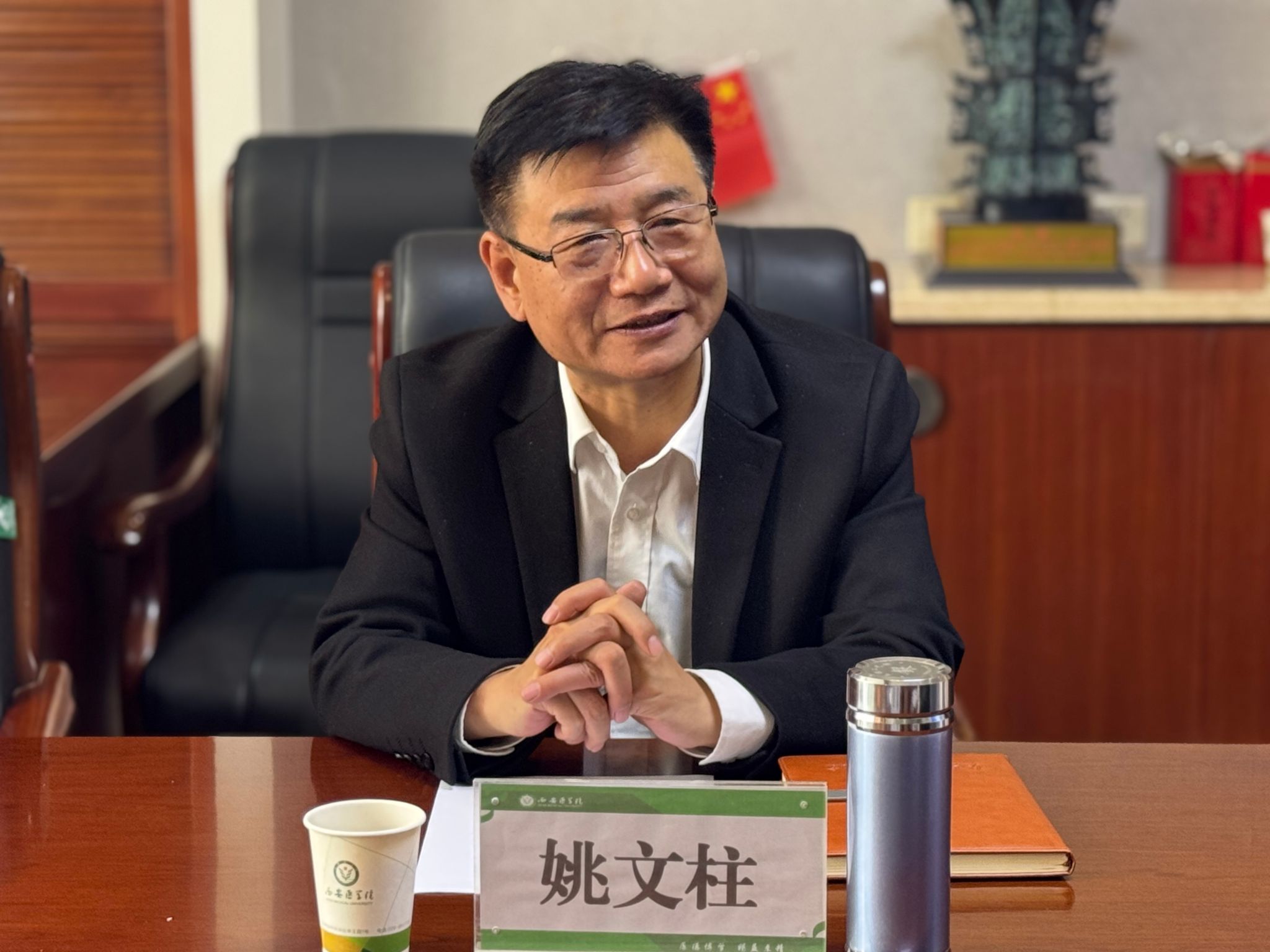 姚文柱对蔡彬一行来访表示欢迎,并简要介绍了学校发展概况。他指出,目前学校深入贯彻党的二十届三中全会和全国两会精神,落实省委关于“三个年”活动要求,深化改革开放,通过实施“七个一”工程“122计划”,持续推进内涵建设,不断提升学校综合实力和社会影响力,努力实现高质量发展。希望双方以此次座谈为契机,优势互补,加强合作交流。