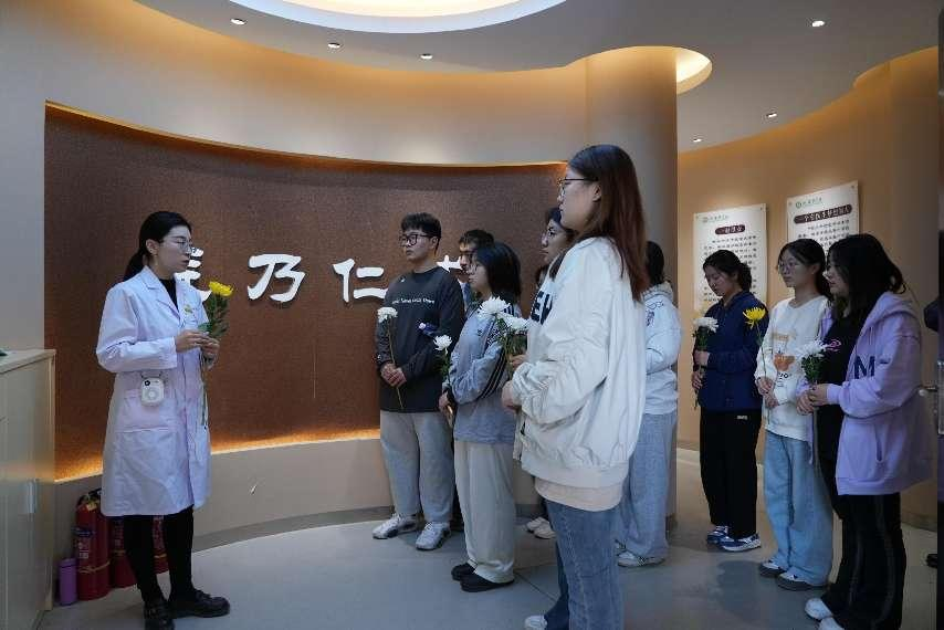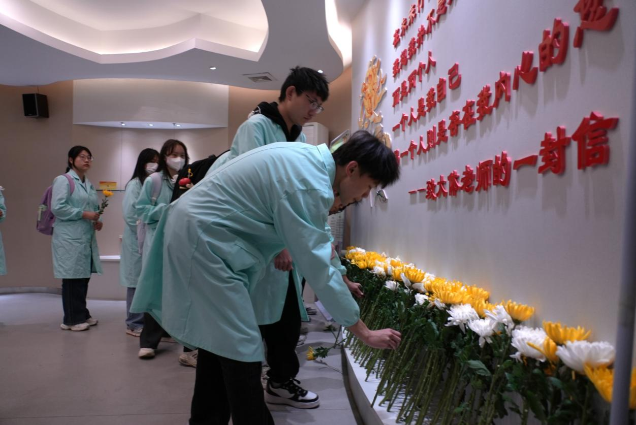 活动现场设置了签名墙,师生拿着手中的笔,郑重地签下自己的名字,表达了对“大体老师”的崇敬与感恩。随后大家有序来到弘德馆,面向“大体老师”感恩墙默哀,依次敬献鲜花。马克思主义学院教师在弘德馆组织开展现场教学活动,引导学生以“无语良师”为榜样,用爱和责任去守护每一个生命,不仅以精湛的医术为患者解除病痛,更要用高尚的医德去赢得患者的信任和社会的尊重。