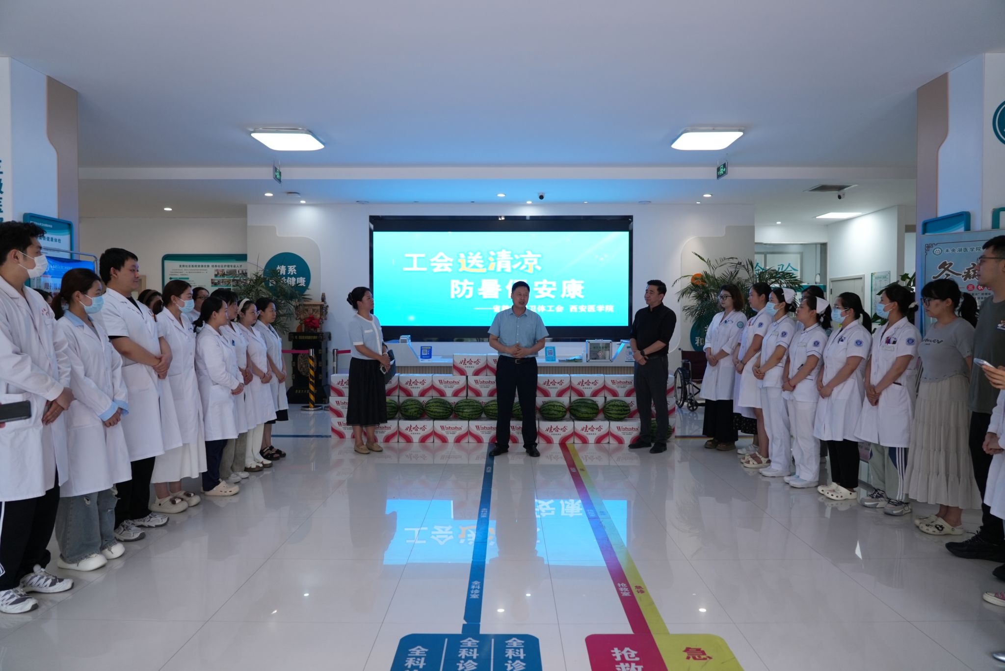 徐富权看望慰问了校医院、保卫处、后勤保障处、护理与康复学院等部门和学院教职工代表,向高温天气坚守岗位的教职工致以诚挚的问候,并送来慰问物品。他充分肯定了一线教职工在学校事业发展中的重要地位,叮嘱大家切实做好安全生产,在保障学校运行的同时注意个人劳动保护和防暑降温,希望大家在学校事业发展中再接再厉,做出更大贡献。