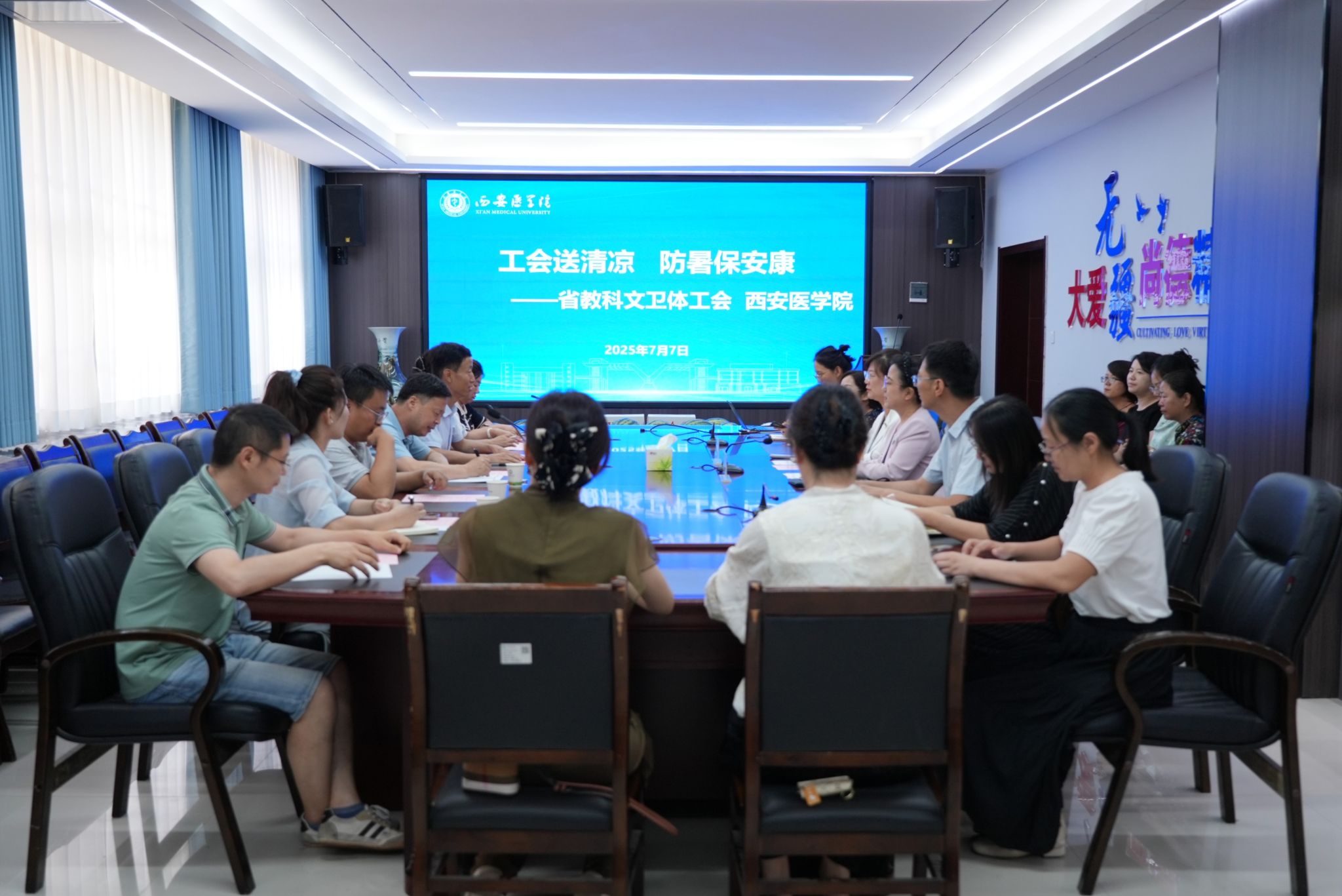 徐富权讲到,慰问和调研过程中充分感受到了西安医学院教职工干事创业的良好精神风貌和先进的管理服务理念和举措,令人印象深刻。他表示,“张永爱创新工作室”近年来成绩斐然,在母婴护理社会服务中发挥了不可替代的作用,并勉励团队成员紧盯社会需求,拓展研究和服务内容,培养更多护理专业的“行家里手”。徐富权要求工会搭建好平台,促进学科专业之间交叉融合,不仅要做职工的“娘家人”,而且要做“一家人”;要按照习近平总书记的要求,激发全体劳动者的积极性、主动性、创造性,团结所有专家、教职工、基层工作者共同投身学校事业发展。