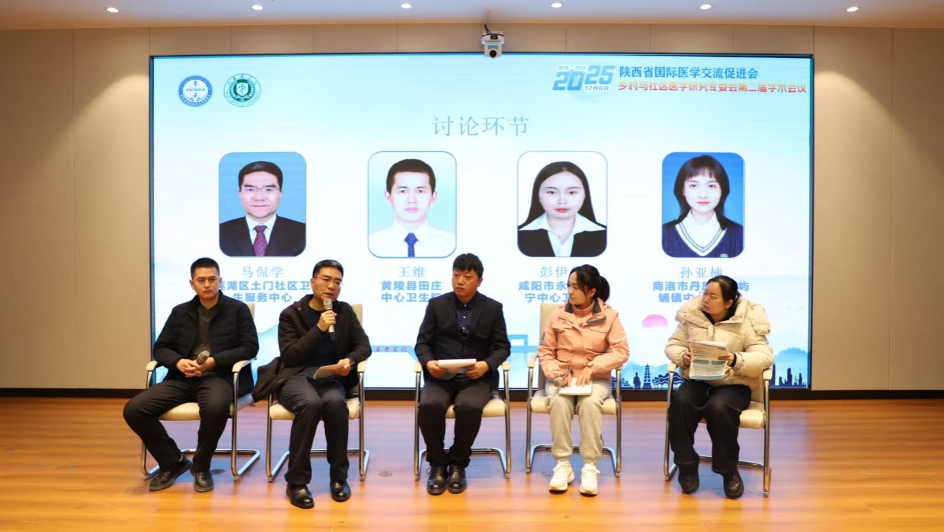 讨论环节,西安市莲湖区土门社区卫生服务中心主任马侃学,延安市黄陵县田庄中心卫生院院长王维,咸阳市永寿县常宁中心卫生院主治医师彭伊梦,商洛市丹凤县铁屿镇中心卫生院住院医师孙亚楠围绕基层工作建设等方面进行了深度讨论。