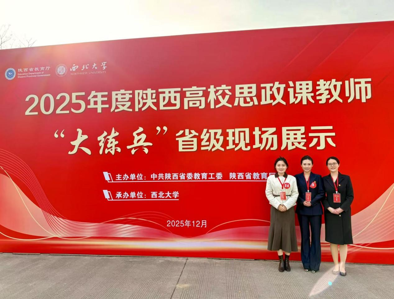 1月4日,委厅公布2025年度陕西高校思政课教师大练兵展示结果。在现场展示中,我校三位青年教师敢打敢拼、奋勇争先,凭借扎实功底脱颖而出,斩获三项特等奖。周雨柔老师获《思想道德与法治》赛道特等奖,何亚琪老师获《中国近现代史纲要》赛道特等奖,杨子昱老师获《形势与政策》赛道特等奖。此次展示不仅荣获我校参加该项赛事的历史最好成绩,更以突出表现位居全省高校前列,充分展示了学校思政课教师的良好精神风貌,彰显了思政课建设的长足进步。