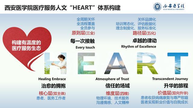 如果说“培育之HEART”是播撒种子,“服务之HEART”则是培育土壤。西安医学院直属附属医院以 HEART 人文关怀体系为框架,通过“双主体、三全、四维、五化”路径,将人文关怀转化为可操作、可衡量的医疗服务实践,实现医患双向治愈。