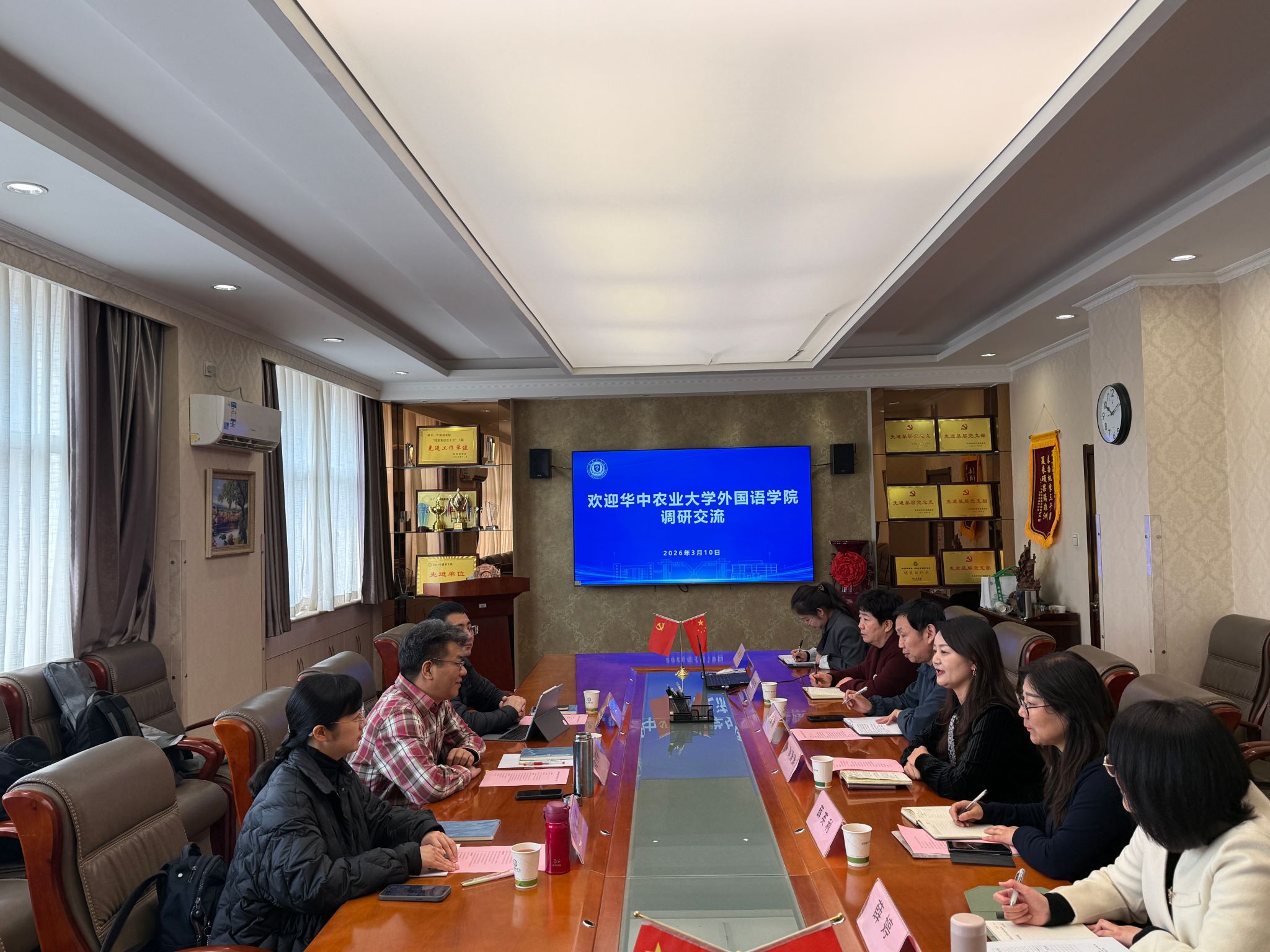 3月10日上午,华中农业大学外国语学院党委书记冯国林一行来到我校外国语学院,就学科建设、教学改革、人才培养等工作进行深入调研与座谈。我校党委委员、宣传部部长耿潇潇,外国语学院党总支书记刘军林、院长薛英利、副院长薛婷,党总支副书记李亚芳及大学英语教研室主任宋元源等参加交流会。