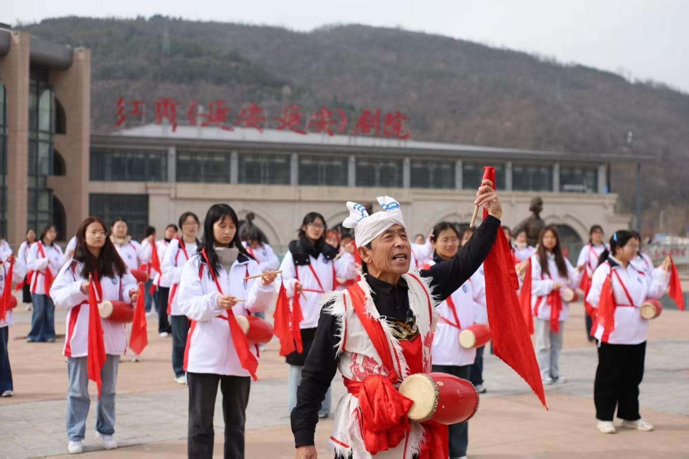 最后一站,学员们来到非遗文化体验区,在民间艺人指导下学习安塞腰鼓和陕北秧歌。大家在亲身参与中感受黄土地文化的粗犷豪迈,更体会到了陕北人民昂扬向上的精神风貌。鼓声阵阵,既是历史的回响,更是奋进的号角。