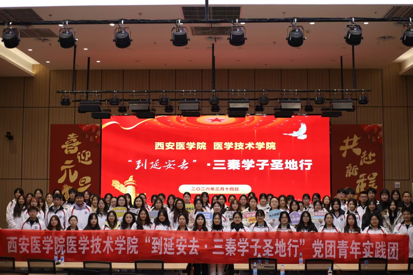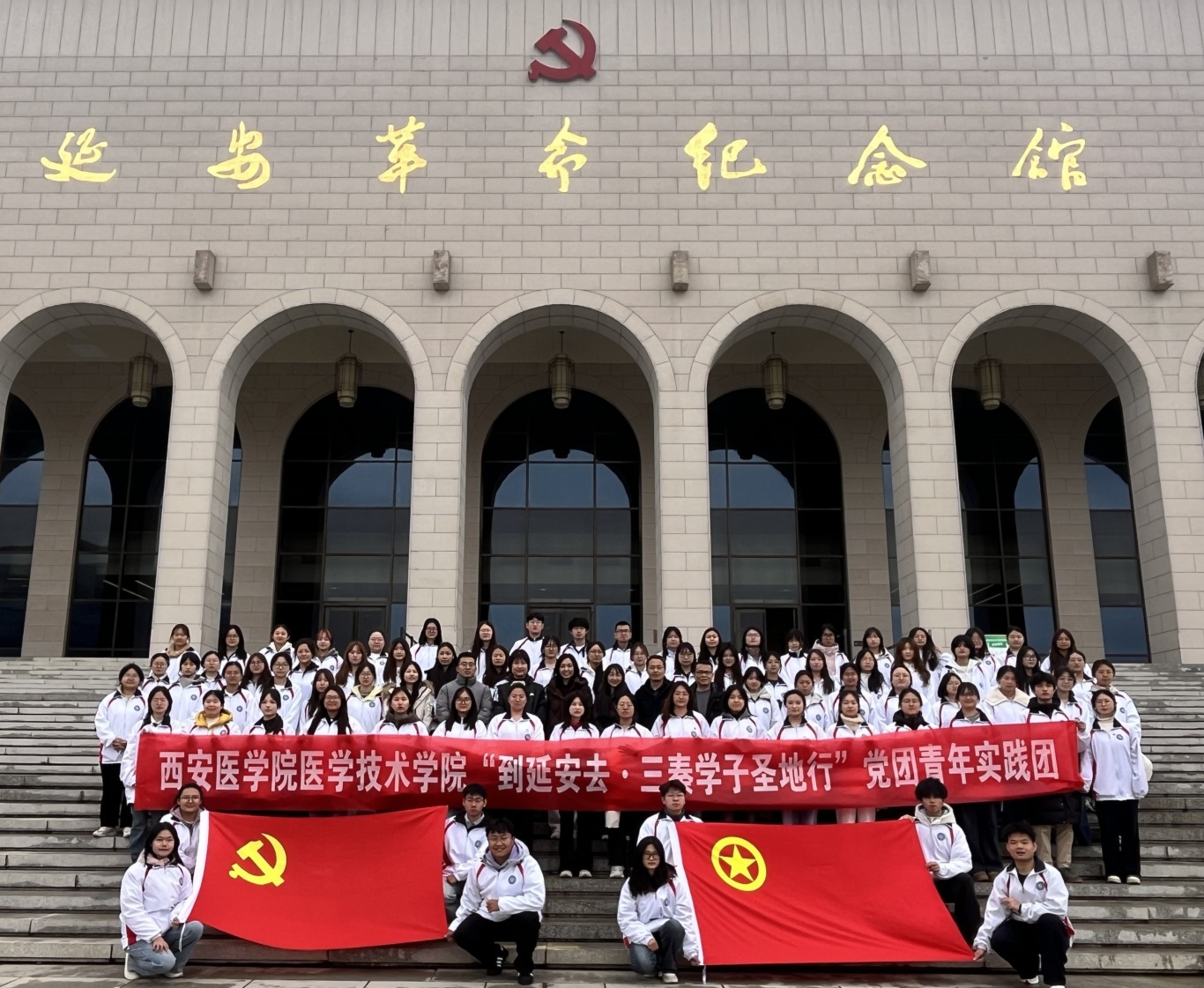 为深入贯彻习近平总书记关于弘扬延安精神的重要指示精神,推动红色文化育人走深走实,3月14日至15日,医学技术学院组织学生党员、入党积极分子、教师代表80余人奔赴革命圣地延安,开展为期两天的“到延安去·三秦学子圣地行”红色教育实践研学活动。通过实地参观、情景再现、现场教学、亲身实践,让青年学子在行走中丈量革命历史、感悟延安精神、传承红色基因。