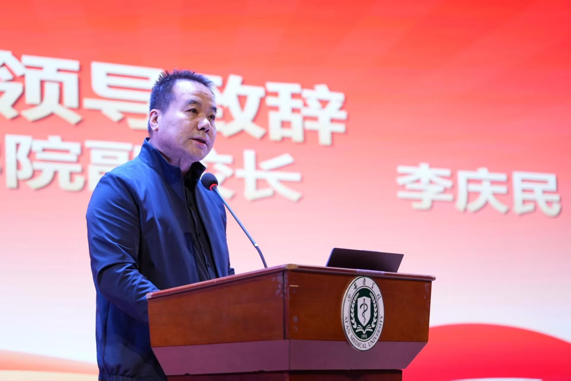 李庆民在致辞中回顾了我校建校以来“面向基层、服务地方,培养高素质应用型医药人才”的办学定位,指出一代代西医学子扎根基层、报效祖国,涌现出郭发刚、毛创泽、邓妮等先进典型。他表示,2025年学校西部计划实现历史性突破,勉励同学们以优秀志愿者和校友为榜样,牢记习近平总书记殷切嘱托,将个人所学与基层所需紧密结合,将青春抱负融入国家战略大局,积极响应时代号召投身西部计划,在服务国家、奉献社会的生动实践中锤炼过硬本领、实现人生价值。
