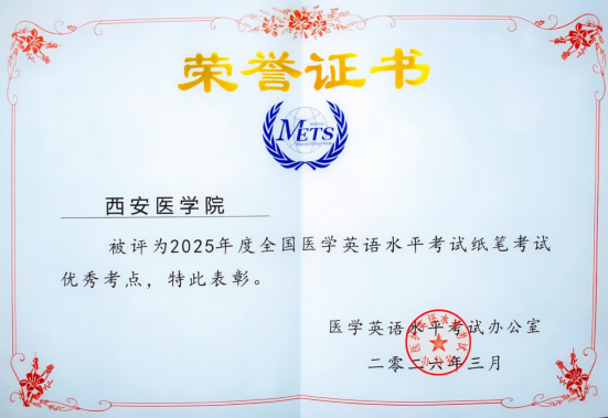 此次获评优秀考点,是对我校METS考试工作的高度认可。学校将以此为契机,持续深化医学英语教育教学改革,不断完善考务管理体系与考试培训体系,进一步发挥直属考点示范引领作用,为培养更多具备国际视野、胜任医学领域国际交流的高素质医药卫生人才持续深耕。