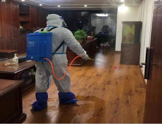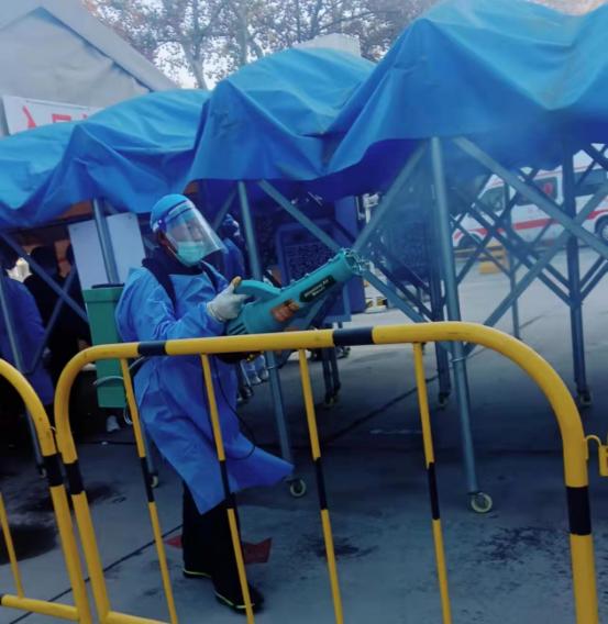 保洁部在完成每日的日常环境清洁及消杀工作的基础上,另增加每日四次对全院露天公共区域、电梯、楼道、家属区的全面消杀工作,并使用消毒液弥散机在每日晨6:00—6:30对住院部一楼、门诊内、外等公共区域进行喷雾消毒。动力中心每周对住院楼地下室公共区域及住院楼、行政楼、教学楼的中央空调及空调新风机组末端出风口进行消毒。