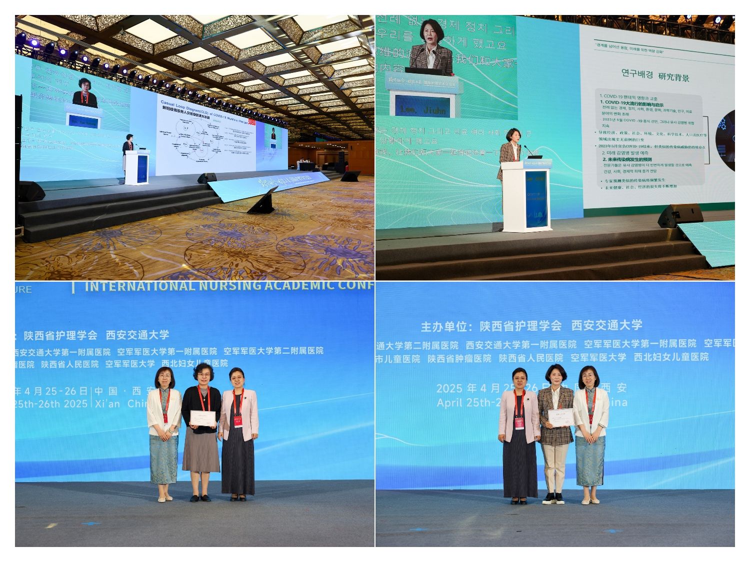 25-26日,尹恩京、李芝彦与护理与康复学院教师团队一同参加由陕西省护理学会与西安交通大学联合主办、西安医学院承办的的国际护理学术交流会议。会议以“跨界融合,赋能未来”为主题,汇聚全球护理领域顶尖专家及学者,旨在搭建国际化的学习交流平台,促进经验分享与智慧碰撞。西安医学院护理与康复学院院长张永爱教授担任主持嘉宾,为两位韩国教授进行主持,尹恩京以“A System Dynamics Approach to Platform Development for Enhancing Nursing Organizational Capacity in Infectious Disease Disaster”为题、李芝彦以“Interdisciplinary Approach To Infectious Disease Disaster Response:Systems Thinking-Based Gaming for Future Preparedness”为题,先后在会议上作专题报告,为参会者呈现了一场高水平的学术盛宴,得到广大护理同仁的高度认可。