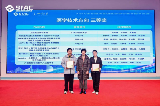 此次获奖是我校持续推进“医工结合”,深化仿真技术在医疗健康领域应用的重要体现,反映了我校在跨学科创新与产学研协同方面的积极成效。学校将继续支持仿真技术、人工智能与医学健康的交叉研究与人才培养,进一步推动科研成果向教学与临床实践转化,助力医疗卫生事业高质量发展。
