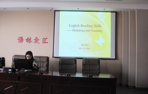 各教研室积极组织初赛选拔,共选送6名选手参加了2016年10月19日下午在系报告厅举行的决赛。选手们按照抽签顺序逐一展示微课设计、播放微课视频,英语系全体教师现场观摩,依照“英语系微课比赛评审规则”,全体教师参与了评审打分,最终推选出薛婷的微课作品“Antithesis”、魏微的“Skimming and Scanning”获得本次比赛一等奖并将代表英语系参加学校比赛。石雪、朱晓娟、杨珅、康芬4位老师获得比赛二等奖。