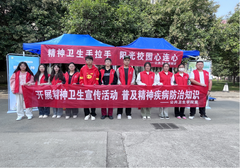 2023年10月10日是第32个“世界精神卫生日”。为进一步宣传和普及精神卫生和心理健康知识,提升广大青年学生的心理健康素养,预防精神疾病,构建平安和谐校园。我校公共卫生学院于10月10日在生活区举办了以“促进大学生心理健康,共同守护美好未来”为主题的世界精神卫生日宣传活动。公共卫生学院负责人,精神卫生学教研室教师和辅导员参加活动。