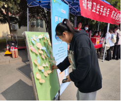 活动伊始,教师们与学生共同参与答题活动,并向在场学生普及了心理健康有关知识。活动志愿者们积极发放宣传册,并对宣传册进行了耐心细致的讲解,使同学们更好地了解精神卫生的具体内涵,做到将心理健康教育外化于心,内化于行。参与活动的学生纷纷在便利贴上写下为心情低落同学加油助力的语句,用最真挚诚恳的祝福给与最大的鼓励。通过本次外场宣传活动,有力加深了广大师生对精神卫生及心理健康的了解,提升了同学们的心理健康知识素养,培育了同学们良好的心理调适能力。