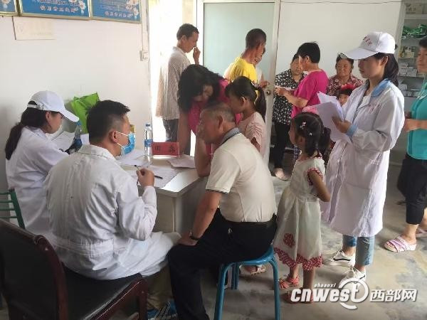 这次义诊已经是这支服务队第八次来到尧生镇。经过一年多的志愿服务工作,服务队员了解到宜君县尧生镇50%的群众家庭存在因病致贫、因病返贫的客观难题,服务过程中采取“现场+跟踪”的医疗扶贫模式。在镇卫生院建立“专家工作站”,为尧生镇患病群众建立电子病例,开通就医绿色通道,每月定期组织附属医院和全科医学院的专家团队开展现场免费诊疗。志愿者们热情地接待群众,填表健康档案和电子病历等,医生们详细地询问病史、认真地进行检查,为村民提出了科学的治疗方案。