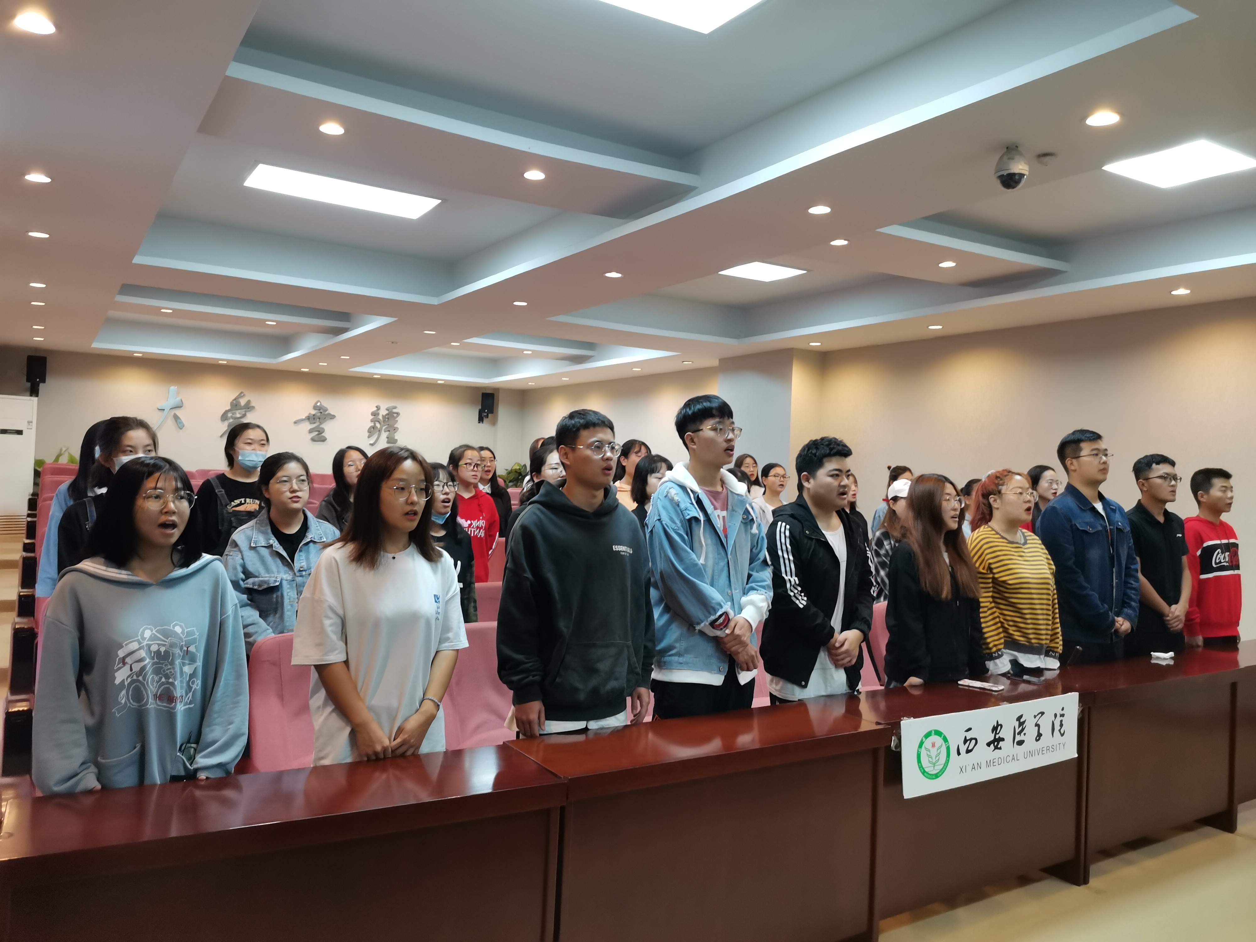 而后在10月1日上午主要进行致敬人民军队,尽显英雄本色专题学习。首先,学生党员在护理学院报告厅,跟随着伴奏全神贯注地歌唱《我和我的祖国》。