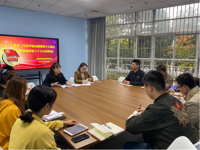 10月13日,校团委召开学习贯彻习近平总书记致全国青联十三届全委会全国学联二十七大贺信精神专题学习讨论会。校团委副书记李美玥、团委侯丹老师及校级学生组织代表参加了此次会议。
