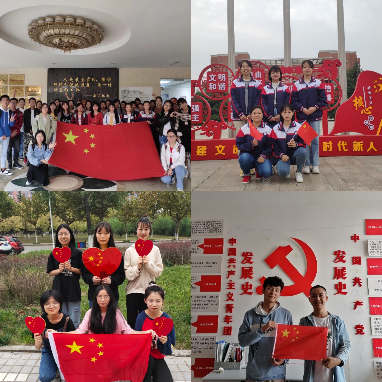 此外,各团支部团员青年通过录制祝福语和手势舞等视频,表达对祖国未来发展的美好祝愿以及对祖国成立71周年的礼赞和祝福,表现了团员青年的朝气蓬勃,同时,激发了团员青年的爱国情怀、民族精神和自豪感。