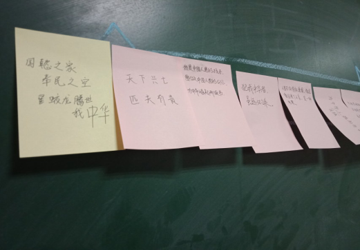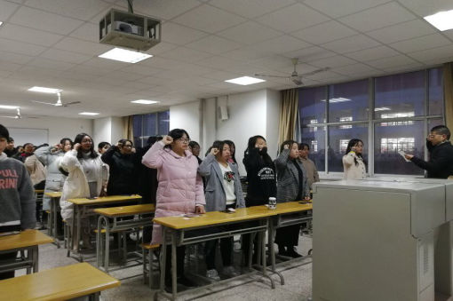 此次活动在青马社成员共同高唱《我的中国心》中拉开帷幕。全体成员进行了庄严的宣誓,有力的宣誓声回荡在教室。接着,全体成员庄重地写下了自己对于爱国奉献的理解和心声,并且贴在黑板上构成“12•9”字样,同学们表示:作为新时代的团员青年,每个人身上都肩负着历史重任,我们要奋发向上,努力学习,以自己的才智为“健康中国”、为实现两个一百年奋斗目标贡献力量。最后,会长对此次活动进行了小结,并组织同学们合影留念。