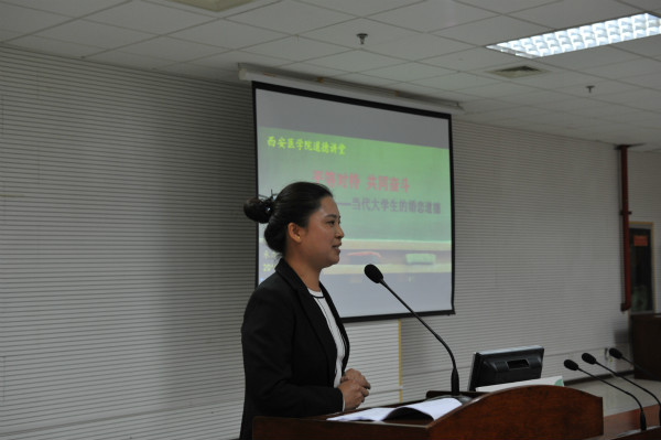 本次道德讲堂由医学技术系学生科科长吕宝老师主讲,她以“平等对待 共同奋斗”为主题,通过“看一部短片、讲一个故事、唱一首歌曲、颂一段经典、作一番点评”的讲述方式,和同学们一起探讨了当代大学生的婚恋道德。活动伊始,吕宝老师以一首《相知相爱》引入主题,向同学们提出了“青春期的大学生在恋爱中的道德观”的思考。通过观看《被灌输的爱情》演讲短片 、诵读舒婷的经典诗篇《致橡树》、讲述周恩来和邓颖超的爱情故事,吕宝老师对正确的恋爱观进行了深入的剖析,使同学们强化了在两性交往中平等对待、共同奋斗的爱情观。
