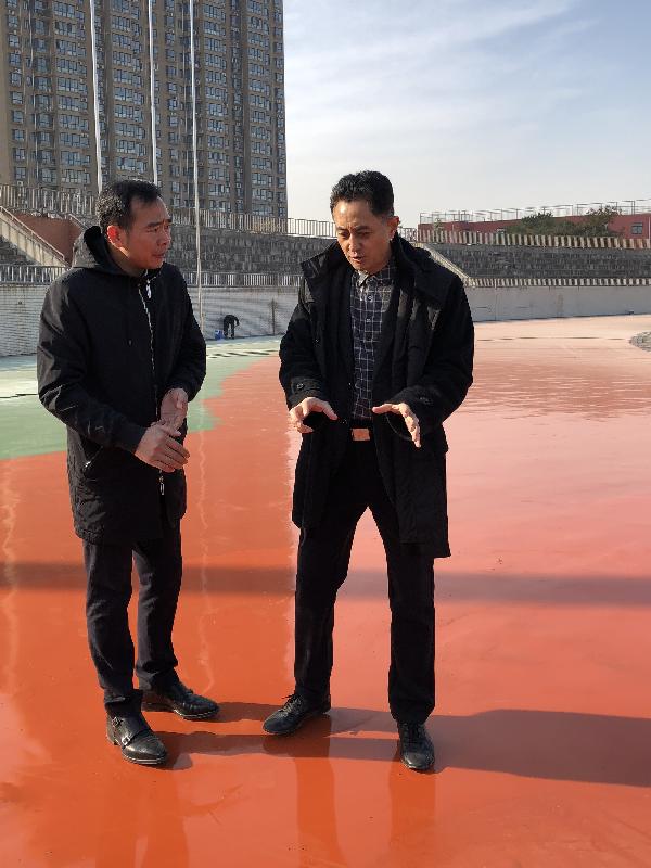黄保强副院长查看塑胶跑道施工现场