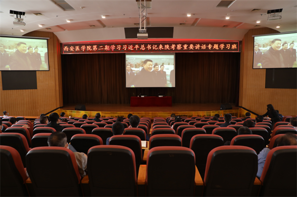 范兵书记指出,习近平总书记来陕考察重要讲话重要指示,视野宏阔、博大精深,贯穿着马克思主义立场、观点、方法,既部署了“过河”的任务,又指导解决了“船”和“桥”的问题,处处闪耀着辩证唯物主义和历史唯物主义的真理光辉,彰显着旗帜鲜明讲政治的根本要求、推动高质量发展的战略定力、以人民为中心的坚定立场、推进生态文明建设的责任担当、勇于自我革命的鲜明品格,为新时代追赶超越指明了前进方向,注入了强大动力。范兵书记对学习贯彻习近平总书记来陕考察重要讲话精神提出四点要求:一要旗帜鲜明讲政治;二要进一步坚定以人民为中心的立场;三要继承发扬 “延安精神”“西迁精神”;四要以勇立潮头的气魄,奋力谱写西安医学院追赶超越新篇章。