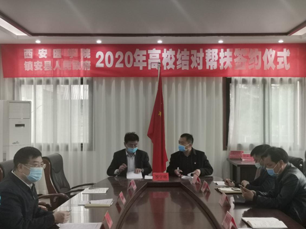 下午,范兵书记在镇安县政府出席了2020年西安医学院帮扶镇安县座谈会。镇安县刘云霄副县长高度赞赏了我校在党建帮扶、医疗帮扶、技能帮扶、教育帮扶、消费帮扶等方面取得的成效,代表县委县政府对我校表示衷心感谢。会上,我校扶贫办公室段新虎调研员通报了2019年我校帮扶任务完成情况,镇安县商务局、卫健局、科教局、人社局等部门提出了2020年帮扶需求。根据镇安县帮扶需求,姚文柱副院长介绍了我校来年帮扶工作思路,并与刘云霄副县长签订了《西安医学院对口帮扶镇安县助力脱贫攻坚项目协议书》。