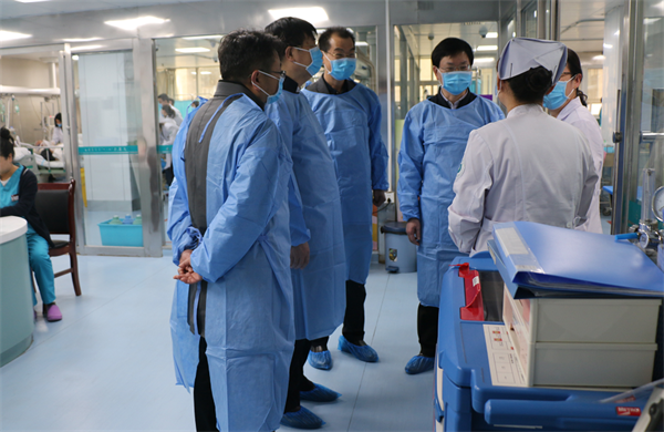 姚副秘书长首先来到急诊科,参观了急诊抢救设施、设备。随后姚副秘书长一行来到消毒供应室,认真听取了消毒供应室的精细化管理成果汇报,详细询问医疗耗材消毒、储存、分发到临床应用及物品回收的全过程。最后来到呼吸与危重症医学科,姚副秘书长关切询问了危重患者救治、康复情况,查看了ECMO设备及此项技术开展情况及成效,并询问了今年甲流疫情状况。