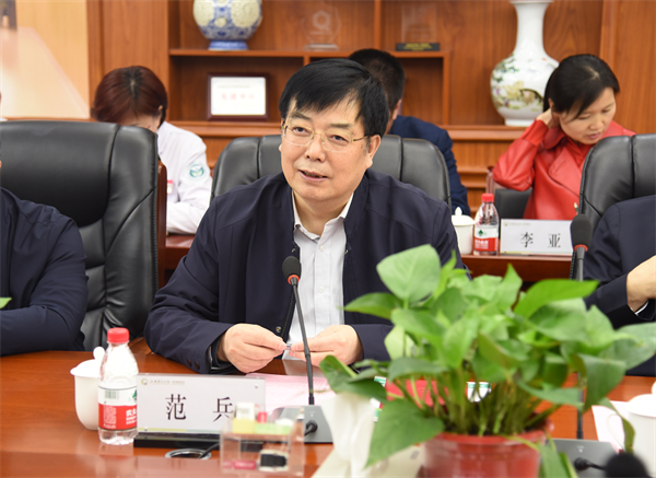 现场调研结束后,在行政楼会议室召开了座谈会,座谈会西安医学院党委书记范兵主持。