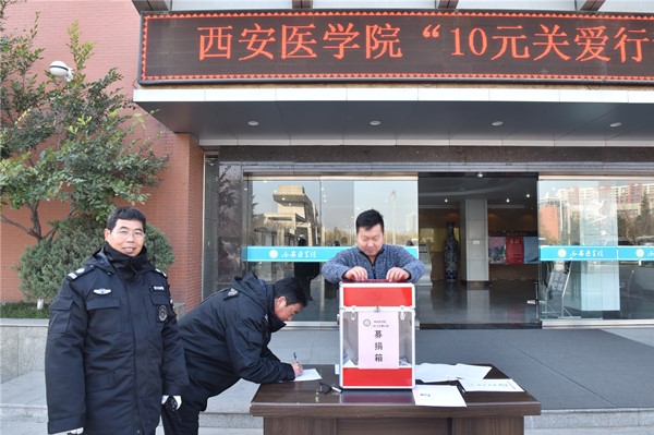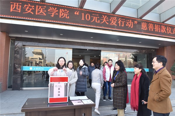 “10元关爱行动”是陕西省文明办和省慈善协会发起的公益活动,我校积极参与和举办此类活动体现了西医人的社会担当,激发了广大教职员工参与公益事业的积极性,营造了向善、为善、扬善的良好氛围。全校职工将不忘教书育人初心,牢记立德树人使命,坚持培育和践行社会主义核心价值观,推进学校精神文明建设工作再上新台阶。(党委宣传部 文/图 李莎莎 审核/马征)