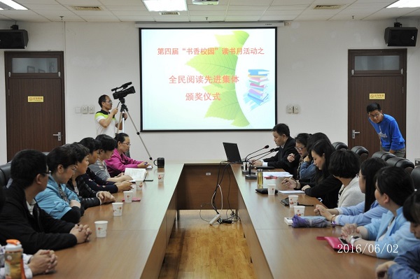(图书馆)2016年6月2日下午,图书馆在一楼会议室召开了创建省级文明校园暨图书馆第四届“书香校园”读书月活动总结暨表彰大会。会议由图书馆办公室主任曹沛主持,宣传部办公室主任安玮娜、图书馆部室主任和获奖师生参加了会议。