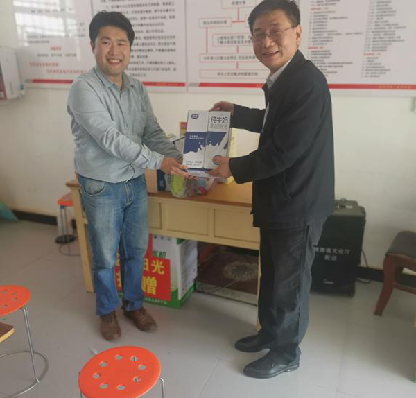 杨帆院长首先来到油房坪村小学,同代占军校长亲切交谈,了解全村义务教育控辍保学、疫情期间网络授课及开学准备工作等情况,并代表学校捐赠了额温枪、口罩、消毒液等价值4500余元的防疫物资,助力村小学顺利开学。