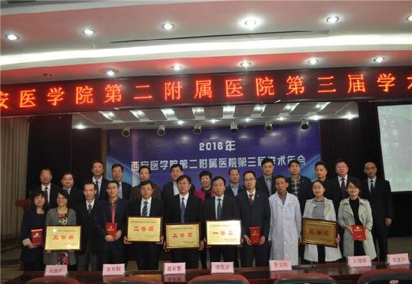 为了深入贯彻落实党的十八届五中全会精神,贯彻习近平总书记“创新、协调、绿色、开放、共享”的新发展理念,弘扬科研在创新中的作用,提高广大医务工作者的业务素质,推动学科发展,提升医院的综合实力,我校第二附属医院于2016年4月9日召开了第三届学术年会。会议表彰了2014至2015年度在开展新技术、新业务及科研工作方面表现突出的科室及个人。西安医学院副院长李雪萍,科技处苏兴利处长,市医学会葛移繁秘书长、灞桥区卫计局李文俭局长,以及灞桥区各医联体成员单位领导莅临会场,并特别邀请了第四军医大学口腔医院徐礼鲜教授、第四军医大学DNA分型中心吴元明教授、西安交通大学第一附属医院陈明伟教授,以及上海浦南医院功能神经外科孙成彦教授等全国知名专家作了精彩的学术报告。第二附属医院全体中干及学科骨干300余人参加了此次会议。