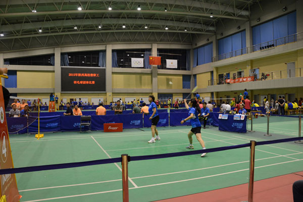 13所高校300余人的运动员、裁判员聚集一堂,宝文理体育馆生机盎然、热闹非凡。省教育工会张敏主席宣布比赛开幕;现场爆发出雷鸣般的掌声中,紧张激烈的较量开始了。A、B两组单循环比赛在6个场地同时展开。场上选手起跳、扣杀,汗水淋漓;场下掌声、呐喊声此起彼伏;几十部相机记录着每一个精彩瞬间。一天半的角逐,我校代表队分别以4:1、5:0战胜西京学院、陕西学前师范学院,但以1:4、1:4、1:4、0:5输给了长安大学、陕西财经学院、西安建筑科技大学、西安科技大学。应该讲,我们取得了比预想更好的战绩;虽然没能取得进入第二轮决赛阶段的资格,但参与并完成比赛,就是我们最大的收获。