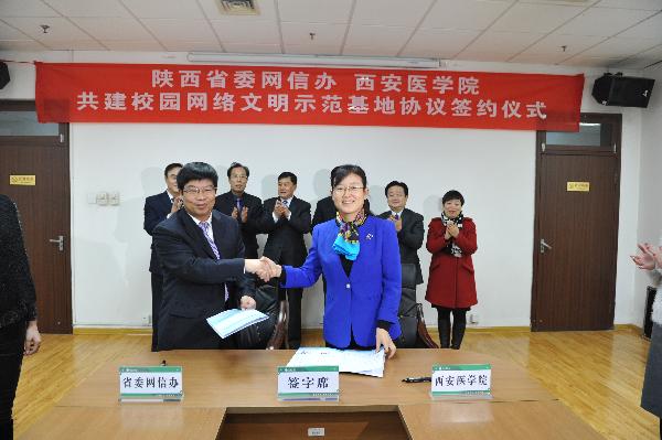 (宣传部)12月29日上午,我校与省委网信办在未央校区图书馆一楼会议室签订了共建校园网络文明示范基地的合作协议。省委网信办主任孙琳出席并讲话,我校党政领导、相关部门负责人出席签约仪式。签约仪式由院长唐俊琪主持。
