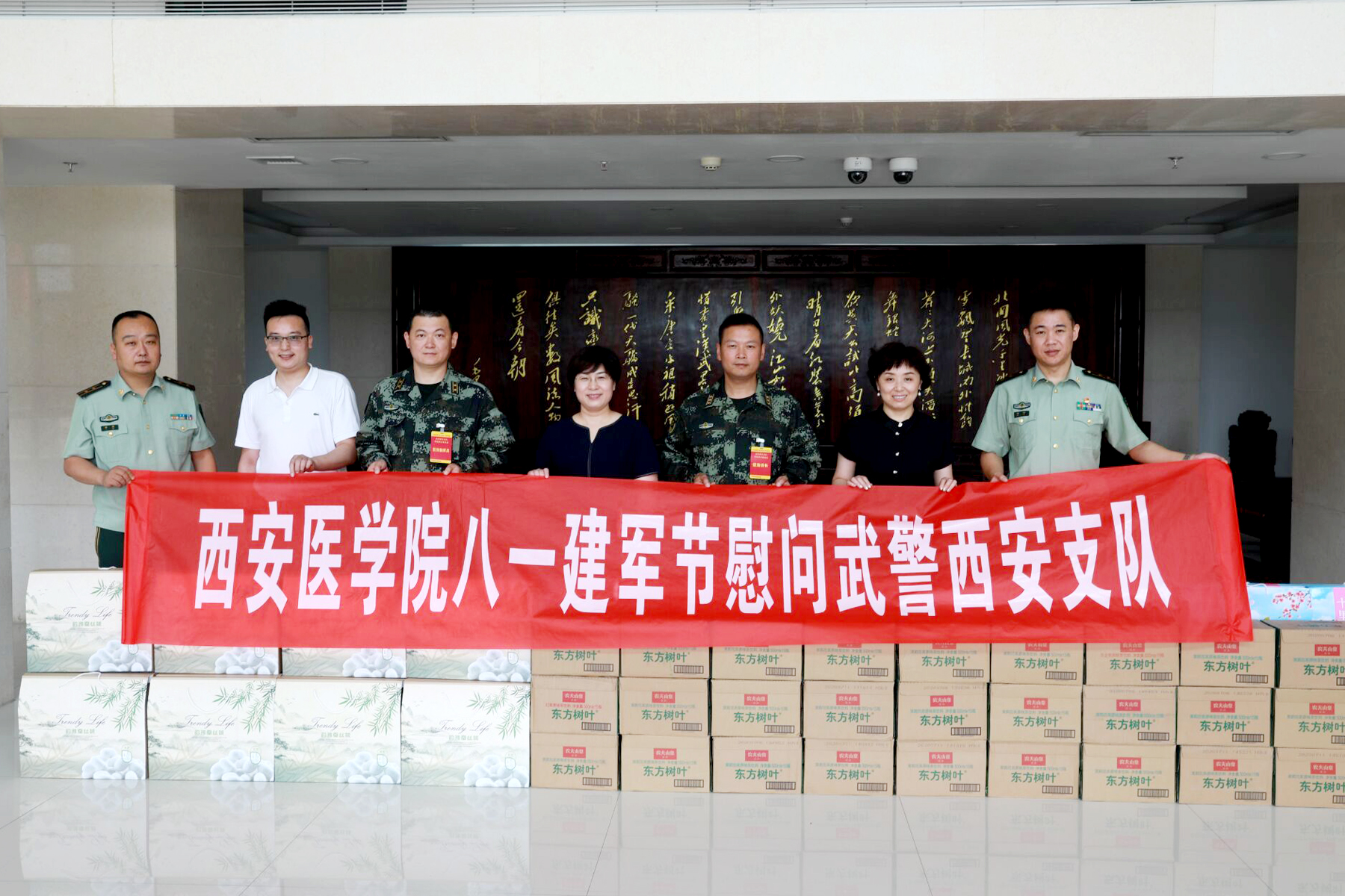 7月29日,在中国人民解放军建军93周年来临之际,西安医学院副院长和新盈在学生处副处长昝倩、教育科副科长刘宁陪同下到武警陕西总队西安支队进行走访慰问,向广大官兵送上节日慰问和美好祝福,共叙鱼水深情,共话军-校合作发展。