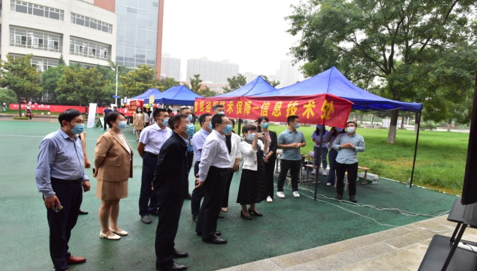 18日上午,全体校领导及相关职能部门负责人亲临迎新现场,指导检查迎新工作,亲切慰问迎新一线工作人员和志愿者。党委书记刘岭详细询问了各迎新点新生报到情况,充分肯定了一线工作人员和志愿者的辛勤付出和无私奉献精神。他要求各部门要扎实细致做好现场接待工作,及时了解新生诉求,在思想上加强关怀,帮助新生尽快适应大学生活,叮嘱大家要严格落实疫情防控措施,认真做好个人防护,为新生提供周到暖心的服务。他强调,相关部门要做好新生报到后的静态管理,加强值班值守,切实担起责任,把工作做实做细,确保各项防控措施落实到位。党委副书记姚文柱带领相关职能部门负责人深入学生生活区,检查指导了新生报到期间的安保值守及后勤服务保障工作。
