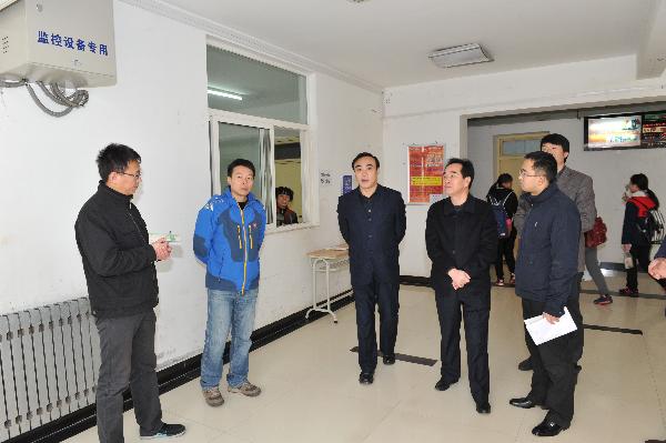 (宣传部 后勤保障处)为进一步落实我校创建省级文明校园、平安校园的有关要求,按照“西安医学院创建省级文明校园暨平安校园动员大会”精神,12月14日上午,校党委副书记、副院长杨帆在后勤处等部门负责人的陪同下,对教工餐厅、高压中心配电室、热力交换站、水泵房、污水处理厂、学生食堂、学生公寓、开水房等重点设施进行了安全检查,看望并慰问了在岗的工作人员。