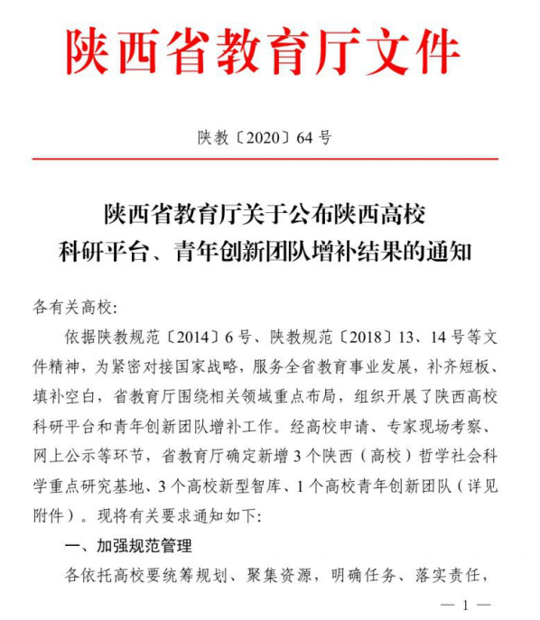 近日,陕西省教育厅公布了《陕西高校科研平台、青年创新团队增补结果的通知》(陕教〔2020〕64号),我校获批首个陕西(高校)哲学社会科学重点研究基地――陕西省公共安全医学防控研究中心。本次获批的陕西省公共安全医学防控研究中心由公共卫生学院门可副院长牵头,依托公共卫生学院和西安医学院健康信息与技术研究所筹建。陕西省公共安全医学防控研究中心,是为强化突发公共卫生事件应急管理体系中多学科和领域交叉融合研究能力、服务西部大健康现代化治理体系发展战略需求而建立的,旨在提供公共卫生应急管理政策研究、智库咨询等指导作用的综合研究机构和平台。以突发公共卫生事件现代化应急管理体系为主要研究方向,利用大数据分析方法和互联网技术,从临床医学、预防医学、社会学、教育学、管理学等多学科角度,围绕公共卫生应急风险识别和评估体系、公共卫生应急管理信息平台和联动机制、公共卫生应急管理策略与路径三个方向,探讨公共卫生法治保障、疾病预防控制体系、重大疫情防控救治体系、重大疾病医疗保险和救助制度、应急物资保障体系等系列问题,为提高西部公共卫生应急管理水平、增进居民健康素养、实现小康社会目标提供良好科研平台。计划到2023年,建成高水平公共卫生应急管理智库服务平台,形成一批有效支撑公共卫生应急管理高质量发展的政策、制度;到2035年,实现公共卫生应急管理研究水平与国内外先进水平对接,在国内进入先进行列。在此向门可副院长及公共卫生学院表示祝贺,希望各教学科研单位以模范先进为榜样,在我校科研平台建设工作上,比学赶超、攻坚克难、再创佳绩。