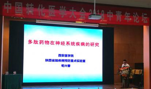 苟兴春教授作了题为“多肽药物在神经系统疾病的研究”的报告
