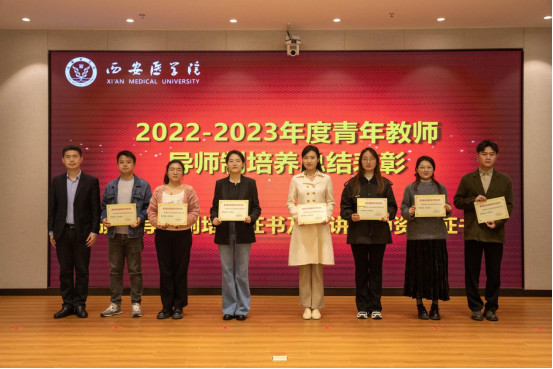 总结表彰会上,教发中心培训科刘文兰对我校2022-2023年度青年教师导师制培养期满考核情况进行了汇报。教务处处长苏兴利宣读了《关于2022-2023年度青年教师导师制培养考核结果的通知》,人事处处长张军峰宣读了《关于授予闫美丽等36名教师西安医学院主讲教师资格的通知》。