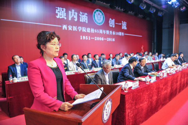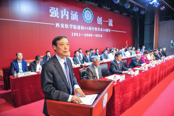 陕西省卫计委副主任陈昭代表陕西省卫计委对我校长期以来为我省基层医疗卫生系统培养大批高素质应用型人才表示感谢,他肯定了我校坚持服务地方经济和社会发展的办学思路,表示将遵照省政府的要求,全力支持我校强内涵、创一流,创建西北医科大学。