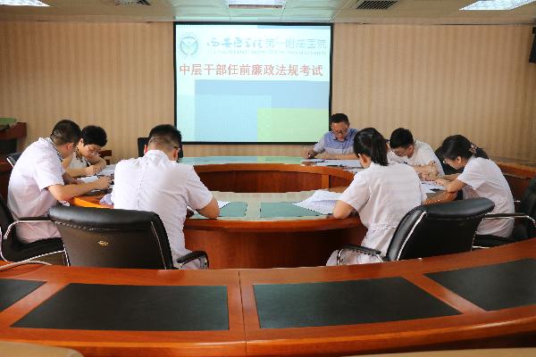 (第一附属医院)为进一步加强对中层干部的反腐倡廉教育,增强中层干部党纪国法观念,促进廉洁从医从政意识,8月12日上午,我校第一附属医院对7名拟提任的中层干部进行任前廉政法规考试。第一附属医院党委副书记、纪委书记杨西萍同志考前强调,此次考试一方面是考查中层干部对廉政法规知识的掌握情况,另一方面是推进医院党风廉政建设继续向前发展,参加考试人员应高度重视,认真仔细答题。