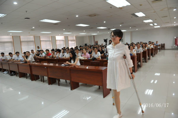 本次道德讲堂以“自强不息,青春在逆境中飞扬”为主题,通过“唱一首好歌、讲一个故事、看一段视频、诵一篇经典、做一番点评”五个环节将主题内容贯穿其中。活动伊始,全体同学合唱了《我的未来不是梦》,同学们用歌声唱出了自己的青春梦想和对未来的期许。接着贺宇姣老师给大家讲述了一个从未下地走过路、浑身病痛却说着“命运如此,休伦公道”的新疆男孩程浩的自强故事,并为同学们放映了四川姑娘雷庆瑶的的演讲视频,被誉为“东方维纳斯”的雷庆瑶虽然失去双臂但她对美的追求和对生命的态度令所有人动容。视频观看结束后,卫生管理系的“自强之星”熊彦丽同学带领大家诵读了个人品德三字经。这三位身残志坚的自强模范给予了同学们强烈震撼和深刻反思,最后,现场的同学发表了自己对自强不息的认知和理解,并分享了自己身边的自强事例。